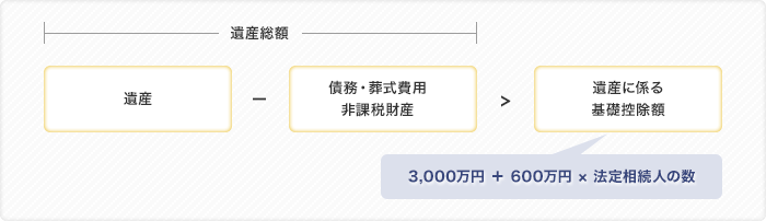 遺産に係る基礎控除額(課税最低限)より財産が多い時に相続税がかかり、相続開始から10ヵ月以内に税務署に申告書を提出しなければなりません。